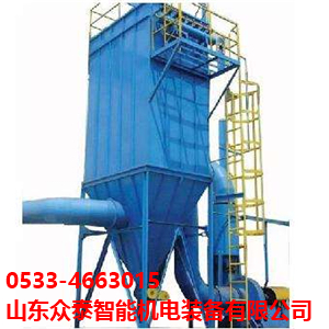 DMC脉冲单机除尘器由灰斗、上箱体、中箱体、下箱体等部分组成,上、中、下箱体为分室结构。工作时,含尘气体由进风道进入灰斗,粗尘粒直接落入灰斗底部,细尘粒随气流转折向上进入中、下箱体,粉尘积附在滤袋外表面,过滤后的气体进入上箱体至净气集合管-排风道,经排风机排至大气。 清灰过程是先切断该室的净气出口风道,使该室的布袋处于无气流通过的状态(分室停风清灰)。然后开启脉冲阀用压缩空气进行脉冲喷吹清灰,切断阀关闭时间足以保证在喷吹后从滤袋上剥离的粉尘沉降至灰斗,避免了粉尘在脱离滤袋表面后又随气流附集到相邻滤袋表面的现象,使滤袋清灰彻底,并由可编程序脉冲控制仪对排气阀、脉冲阀及卸灰阀等进行全自动控制。